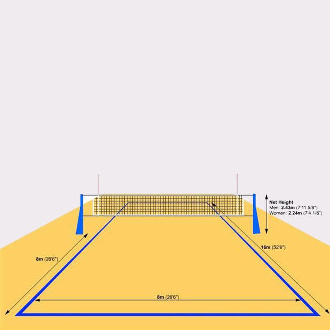 מידות מגרש תקניות: הסט מותאם במיוחד לסימון מגרש כדורעף חופים ופוצ'יוולי בגודל 16 מטר אורך על 8 מטר רוחב, בהתאם לתקנים המקצועיים.