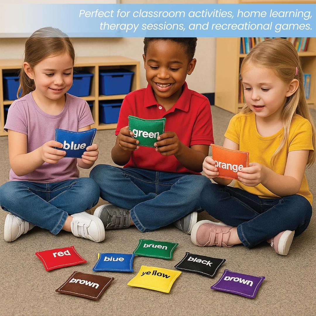 שקיות שעועית אלה, עשויות כותנה נעימה ואיכותית, הן כלי לימודי מצוין ומהנה לילדים. הן נועדו במיוחד לסייע בזיהוי ולמידת שמות הצבעים באנגלית תוך כדי משחק פעיל ואינטראקטיבי.