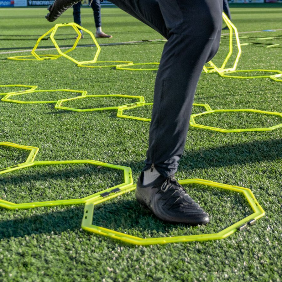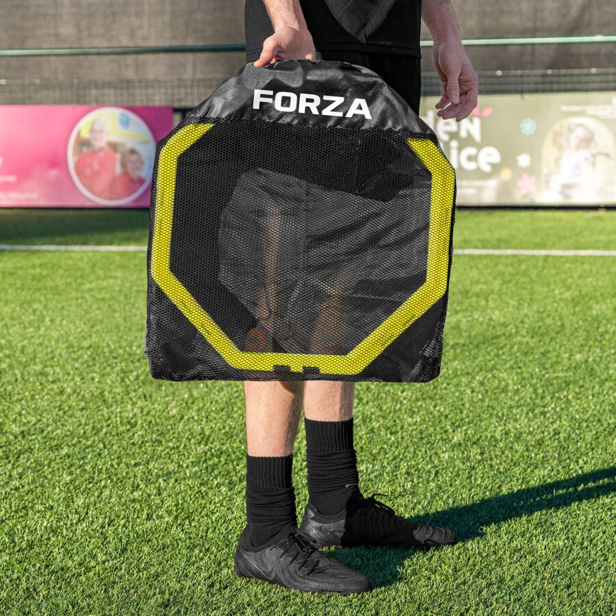 חישוקי ה-FORZA Agility Training Octa Rings הם ציוד אימון חיוני לשיפור המהירות, ההאצה והזריזות הכוללת של שחקנים בכל ענפי הספורט. החישוקים המתומנים (Octagon) עשויים מפלסטיק PP עמיד במיוחד ועמידים בכל מזג אוויר. הם נמכרים בחבילות של 6 יחידות, מגיעים בשמונה צבעים שונים, וכוללים אטבי חיבור מיוחדים המאפשרים ליצור מסלולי אימון מגוונים. תיק נשיאה עמיד כלול.
