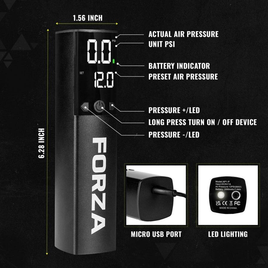 ה-FORZA Digital Ball Pump היא משאבת אוויר חשמלית מתקדמת, המיועדת לניפוח וריקון כדורים באופן אוטומטי ומדויק עבור כל ענפי הספורט. המשאבה כוללת צג LED דיגיטלי ברור, מערכת כיבוי חכם (Smart-Stop) המונעת ניפוח יתר, ופועלת באמצעות סוללת ליתיום-יון נטענת. העיצוב הקומפקטי והקל משקל, יחד עם פנס LED מובנה, הופכים אותה לכלי חיוני למאמנים.