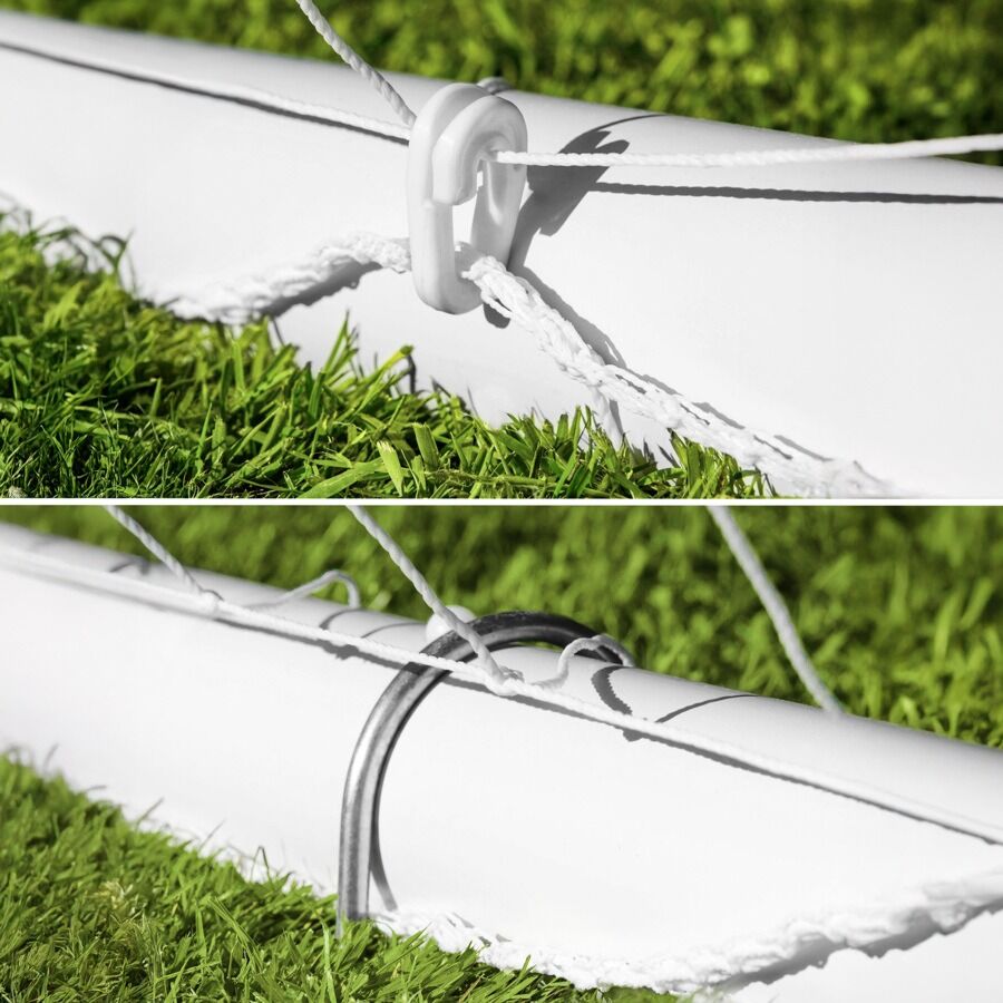 • קלות הרכבה ופירוק: הרכבה פשוטה ומהירה על ידי אדם אחד בלבד – אין צורך בכלים. מגיע עם קליפסים לרשת ויתדות עגינה לקרקע.